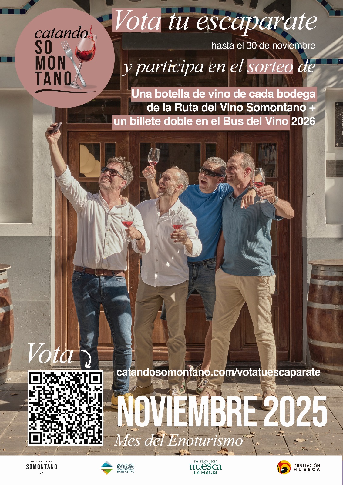 Una botella de vino de cada bodega de la Ruta del Vino Somontano y un billete doble en el Bus del Vino 2026